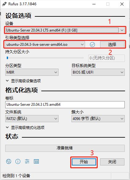 D:\ubuntu-20.04.3-live-server-amd64.iso插入事先准备好的U盘